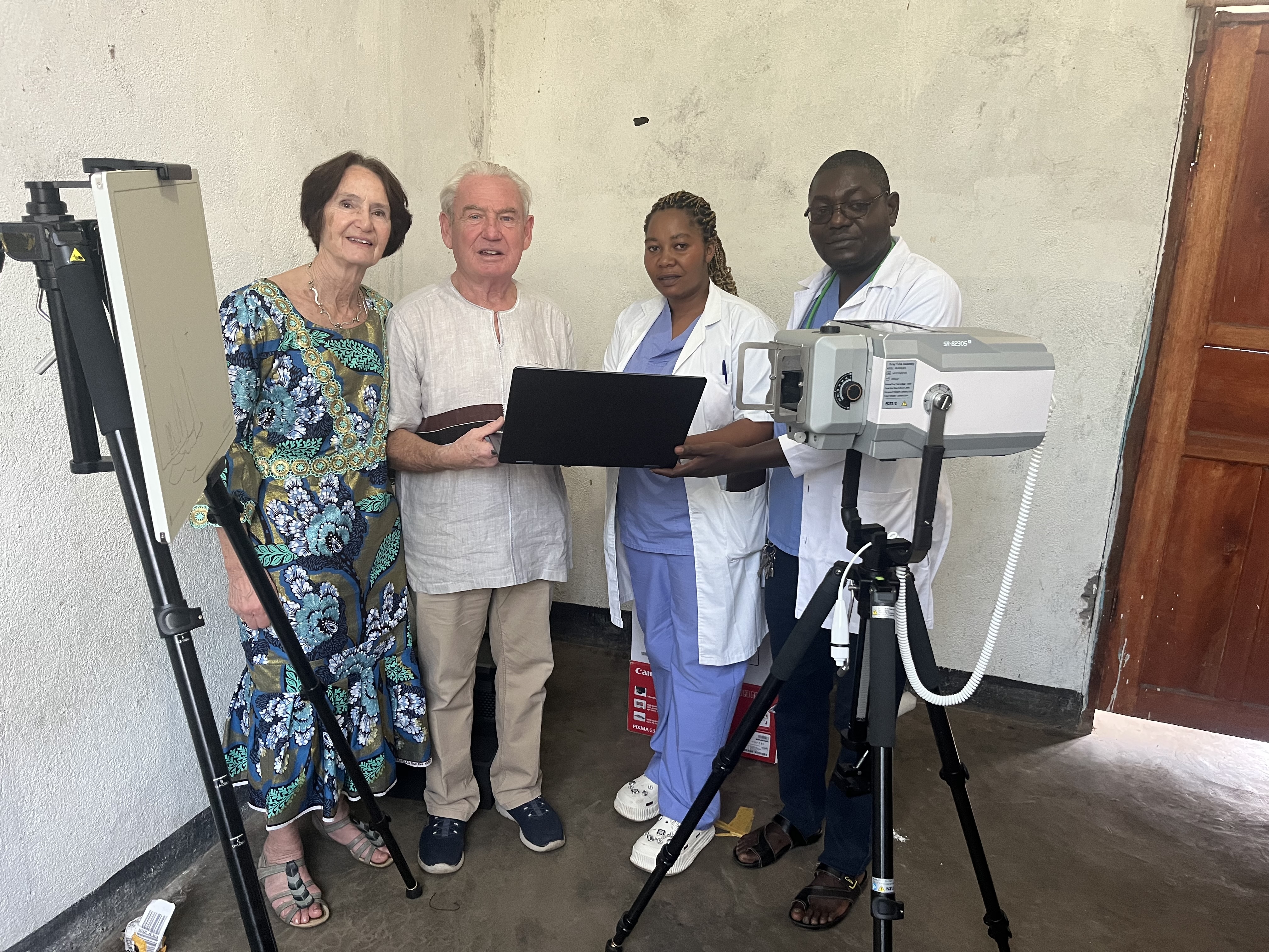 Right now we are taking out and installing a portable digital x-ray machine. This will involve several training sessions and we hope to furnish the hospital with a cellular data link so that the supplying company can log-in remotely. Here is the equipment being handed over to us from Celtic SMR, the supplying company.